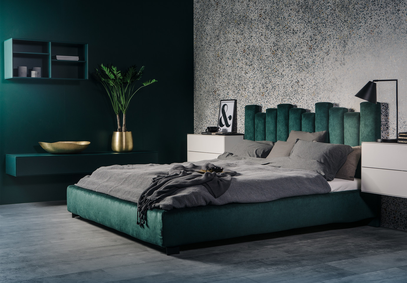 The selection of material guides the sensory perception of a sleek, refined interior. The concrete effect finish with the metal base stands out in the interior with the extended, substantial effect of the ceramic top with plate flared edge and it enhances the impact of its heft to highlight its brightness.