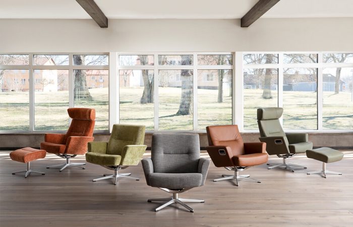 Friend swiveling the return armchair by Conform