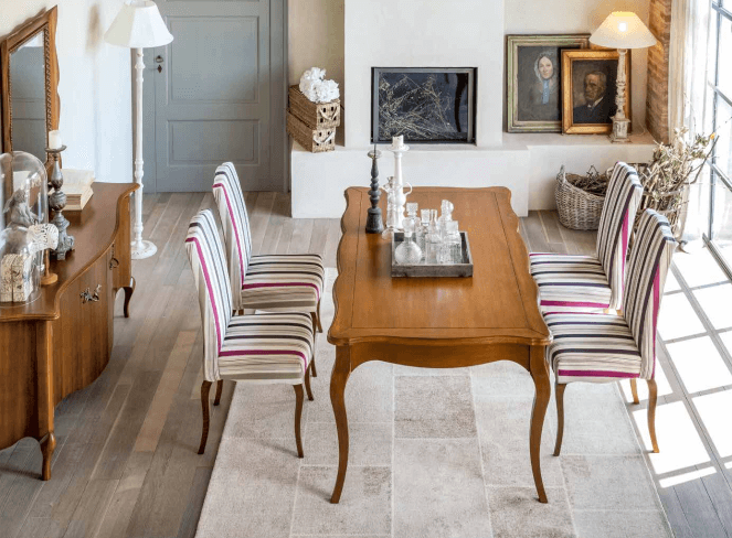 Elegance and luxury are Aston’s main characteristics, with round and delicate lines, bringing your mind back to the days of Louis XIV. The amount of available finishes, allow it to be both perfectly in touch with an ancient times, and with a lighter country stile.
