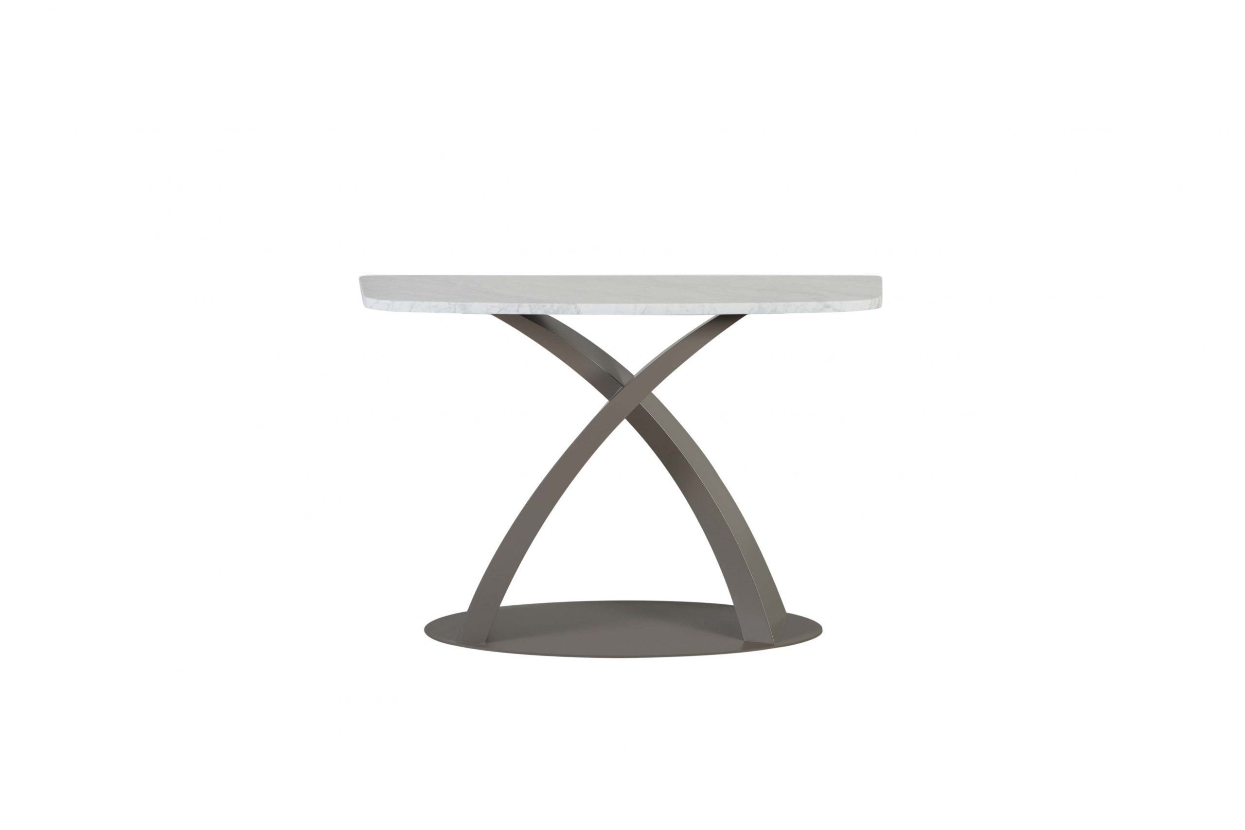 An elegant lightness envelops the Eliseo console, with various finishes steel base. Glass, marble and porcelain top