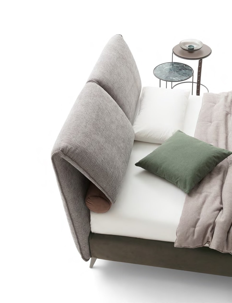 In fabric or texil upholstery completely removable Not available in leather. Possibility to customize the bed frame and headboard in different covering. If the fabrics chosen are of a different category, the price of the highest category will be applied. An optional pair of bolster pillows is available in single color.