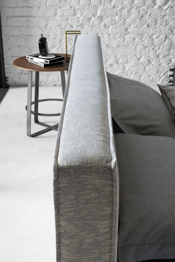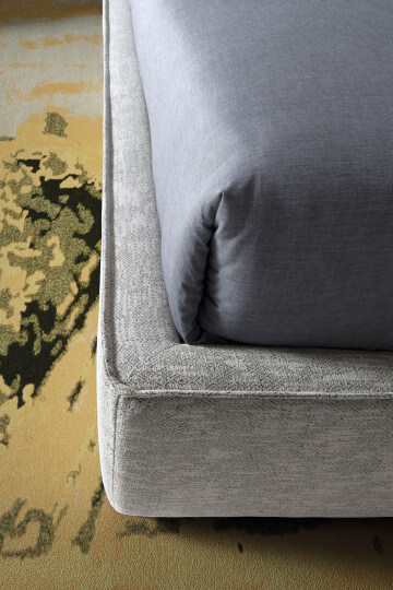 Working on the significant and direct cleanliness of structural lines, the geometry of the Ipanema bed is underlined by its raw-edged stitching. This container bed allows the fabric to set the rules. Constructed from resistant natural fibers, the Ipanema fabric not only conducts elements of the composition but allows them to breathe.