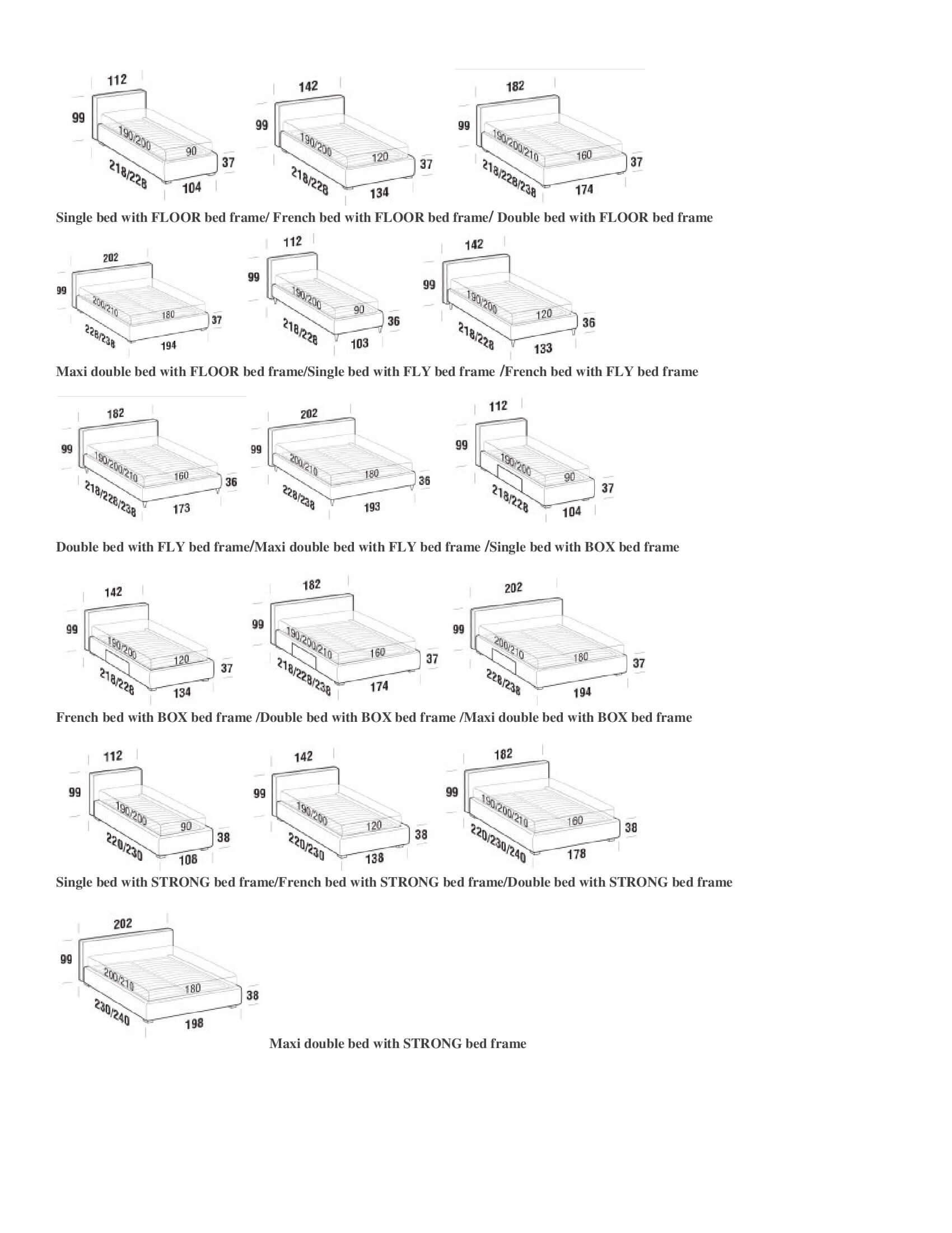 (L):L.182(174) x D.218-228-238 x H.99 cm (mattress 160×200,160×190,160×210)