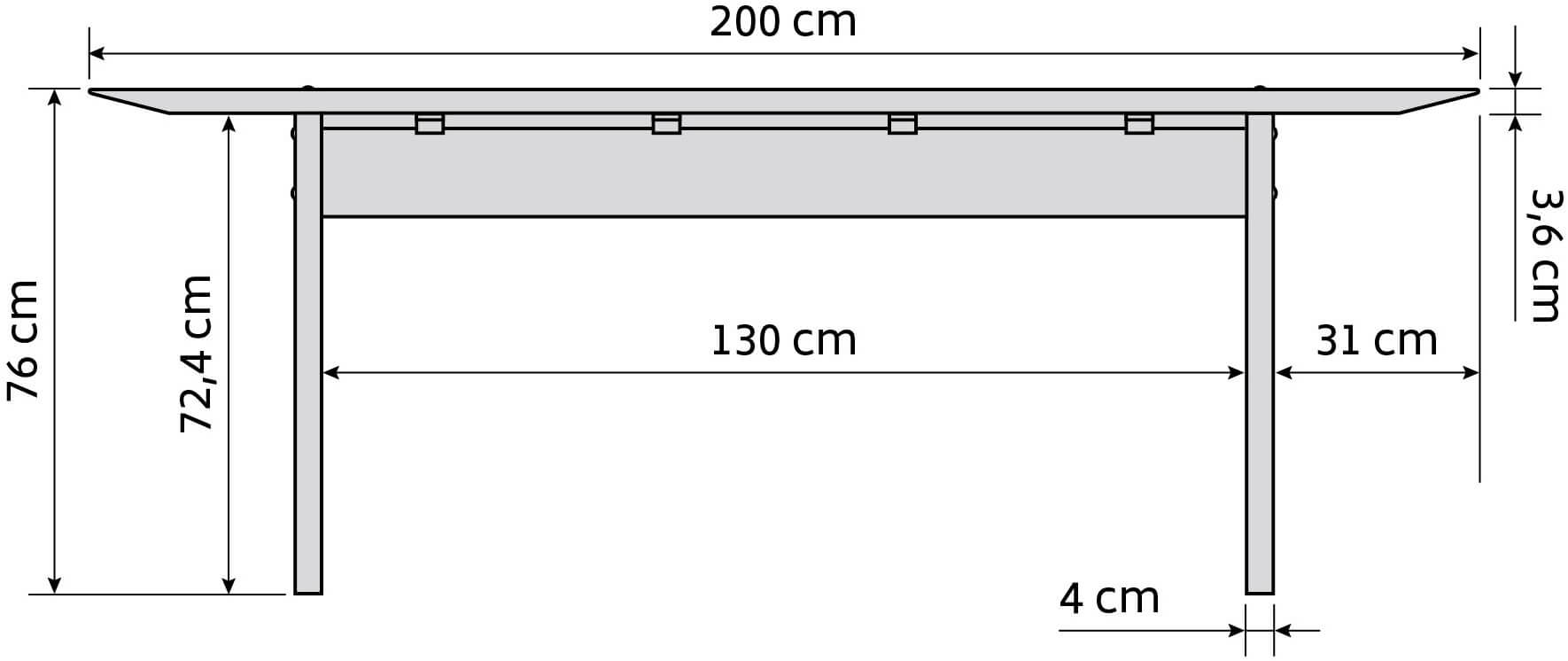 L. 200 x D. 90 x H. 76 cm