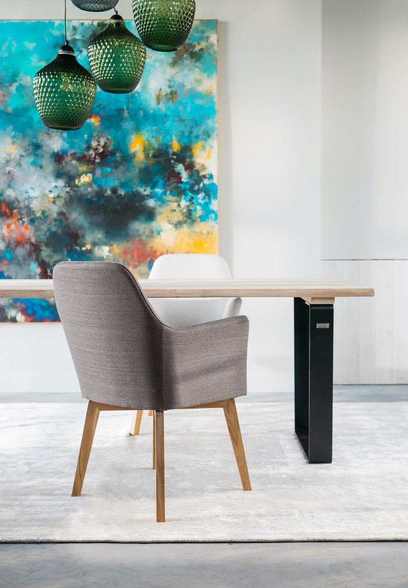 Liva is a modern dining chair with great comfort. It has a swivelling base that makes it very practical in tight placements when there is less room around the table. It has several leg options, both wooden legs as well as metal legs.