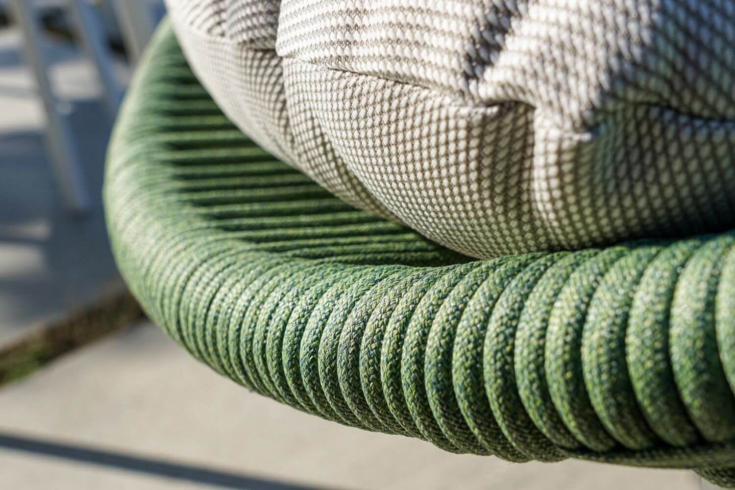 Nancy is a lounge chair characterized by a circular design. It is designed to furnish gardens and outdoor areas of houses and clubs. The structure is in aluminum . Seat and back, with a circle shape, have a covering made with polyester cords . To make the armchair comfortable, a soft quilted cushion with removable cover .