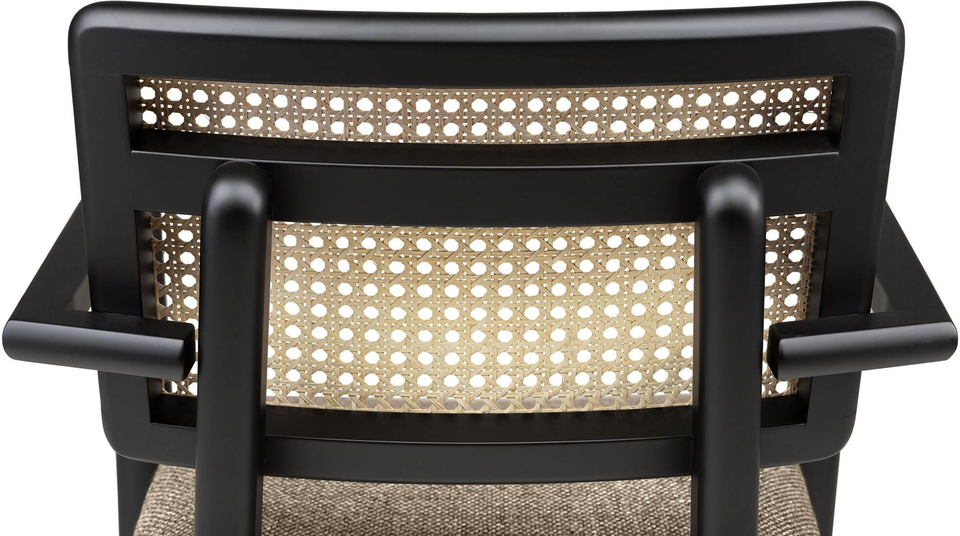 This chair is upholstered with original REYNALDO fabric, a recognised high-end fabric designer/producer from France. REYNALDO is known for their distinctive designs and high quality.
